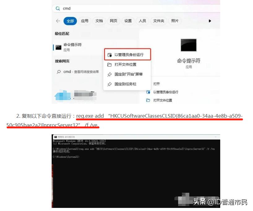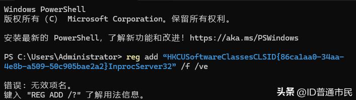 然后输入这行标准且正确并符合达芬奇设计美学的完美代码:reg add “HKCU\Software\ClassesCLSID\{