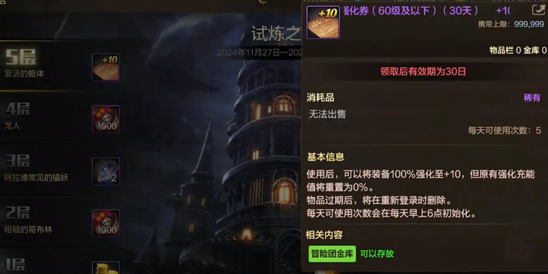 注意:每天领的强化器是+15以下的,一旦领取有效期就是30天,+20以下的强化器可以晚点领。