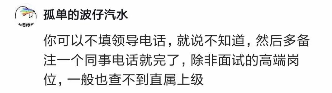 有人说,可以不填领导电话,就说自己不知道,然后多备注一个同事电话。除非面试的是高端岗位,不然一般也查不到直属上级。