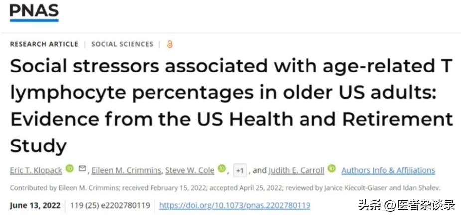 在《PNAS》上的一项关于压力与免疫系统研究中,研究人员通过对五千多名成年人(≥50岁)进行调查发现,压力可以通过加速免疫系统的老化而增加多种疾病的患病风险。该研究通过对5641名50岁以上的美国成年人进行调查,与压力分数较低的人群相比,在考虑了其他潜在影响因素后(吸烟、体脂数等),长期保持压力的人CD4+和CD8+幼稚T细胞比例降低,终末分化T细胞比例增高,以及CD4:CD8比率降低。
