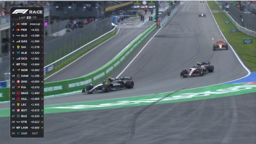 所有车手均换上了干胎,新的积分区车手为维斯塔潘、佩雷兹、阿隆索、加斯利、塞恩斯、周冠宇、马格努森、皮亚斯特里、角田裕毅、奥康。