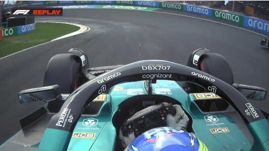 阿隆索在出站时,在3号弯内线超越了周冠宇。