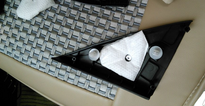 该故障表现为:随着车辆行驶速度的增加,主驾驶A柱或门板、玻璃附近会出现较大风噪,其原因是主驾驶外侧的三角板引起的。解决方法是将其拆下,使用3M双面胶贴一圈隔音海绵即可,当然也可以到4S店去更换改进后的三角板。除此之外,还有部分亚洲龙车型会出现车顶“嘀嘀嘀”或“哒哒哒”的异响,目前针对性的处理方案是将顶棚拆下,并对车顶的螺丝加上尼龙垫片,重新固定即可。