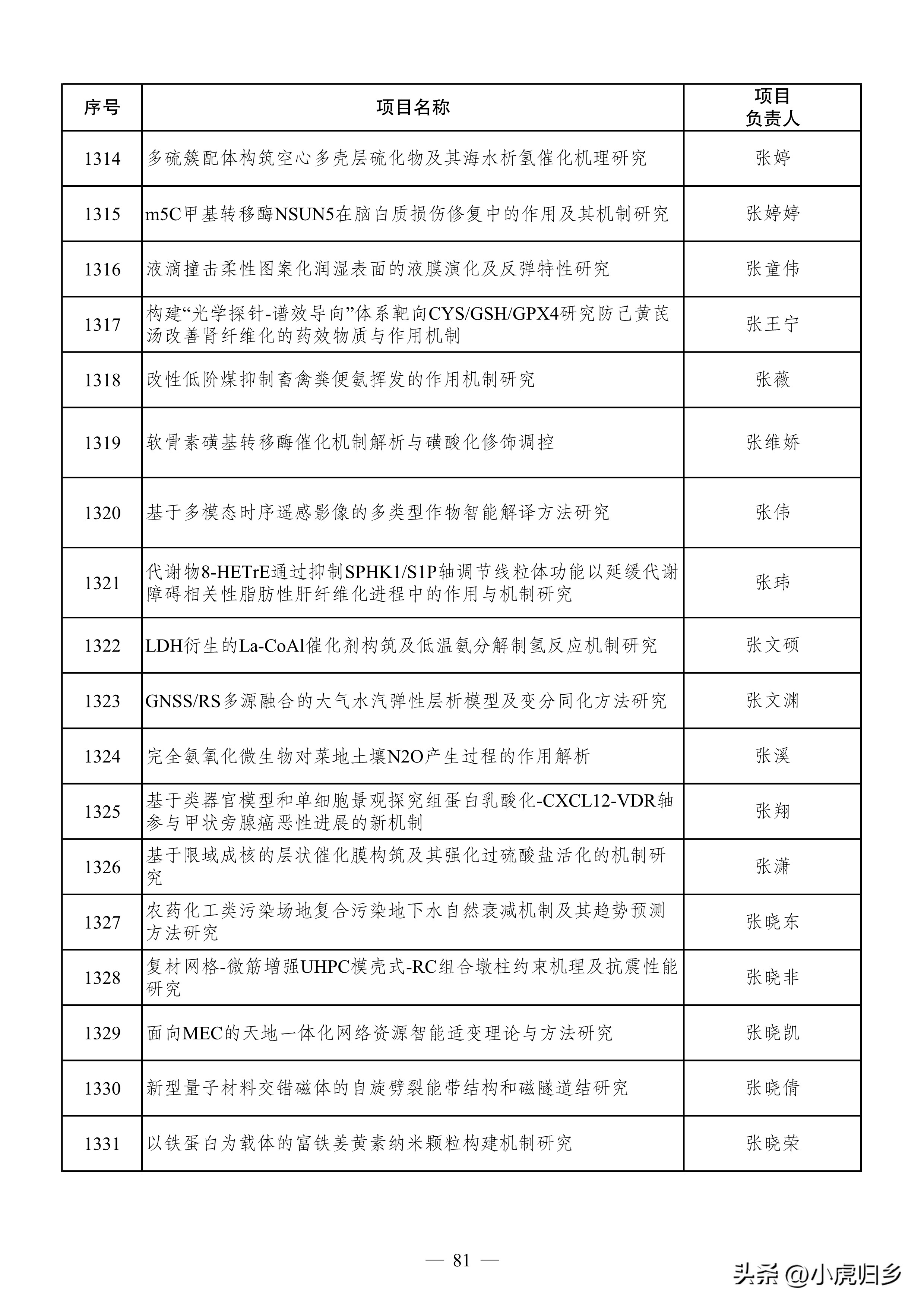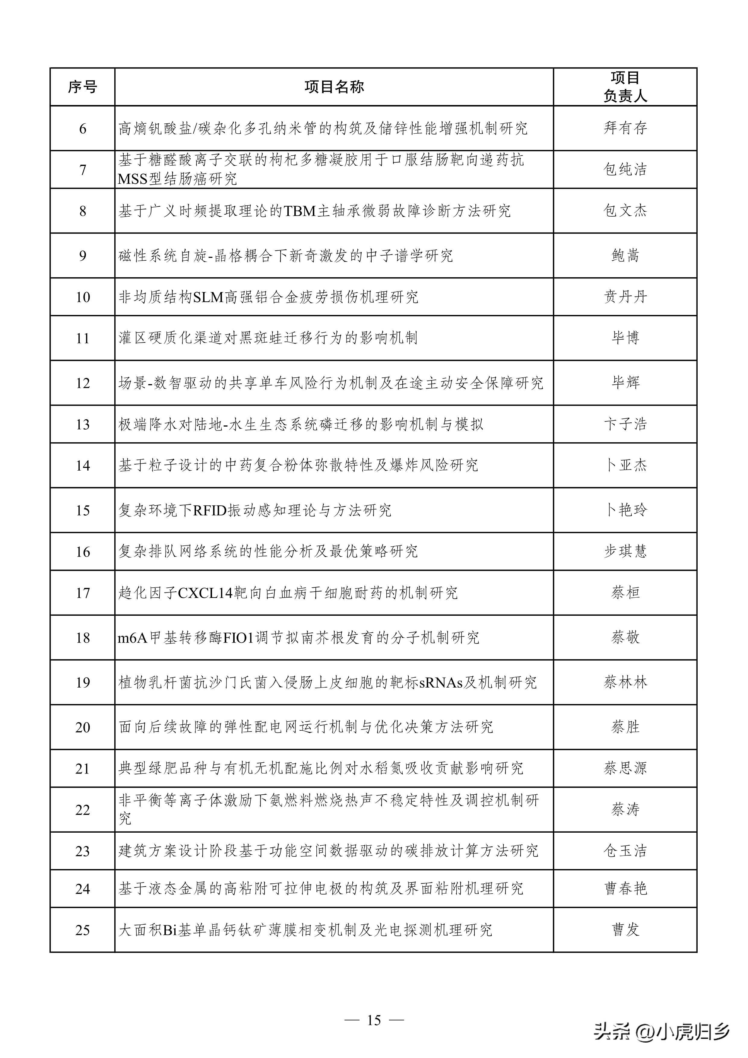 中国矿业大学1项(桂夏辉),南京理工大学1项(李泽超),苏州大学1项(胡士军),南京土壤研究所1项(梁玉婷),南京工业大学1项(王娜娜,女),南京中医药大学1项(杨烨 )。
