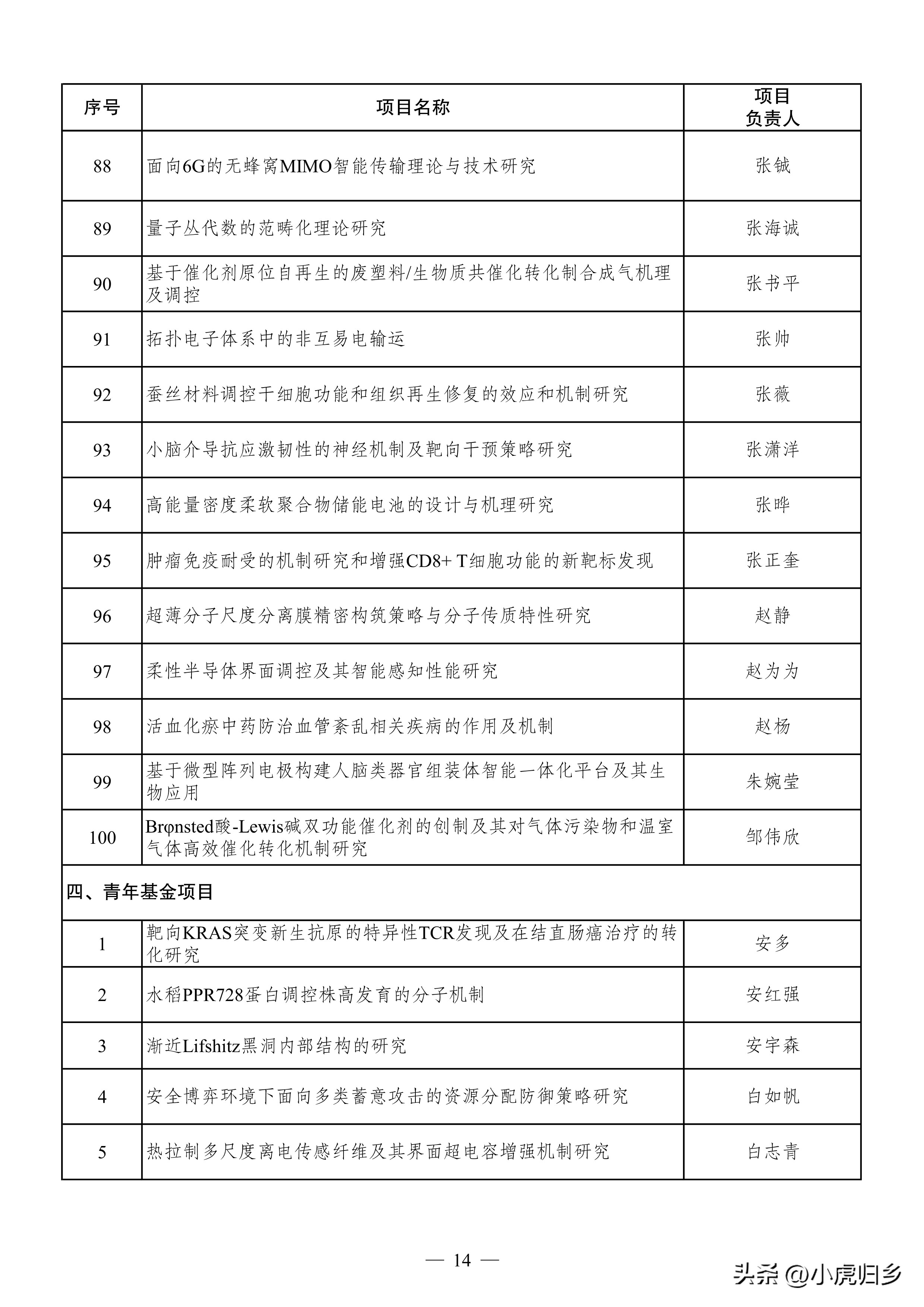 三、优秀青年基金项目100项