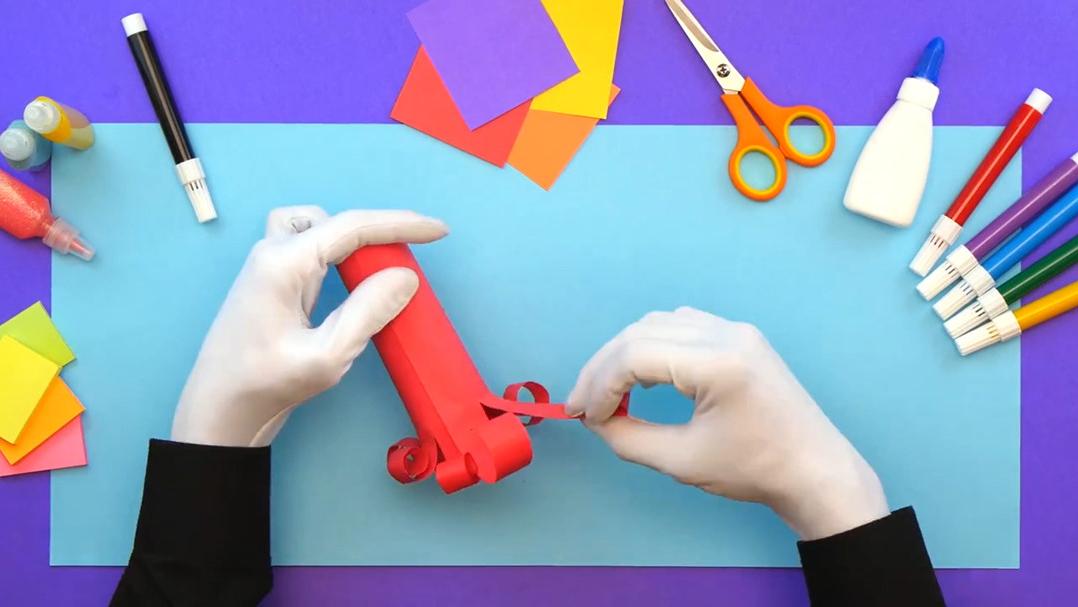 将彩纸下半部分的长条向外卷,做成小章鱼的触须。