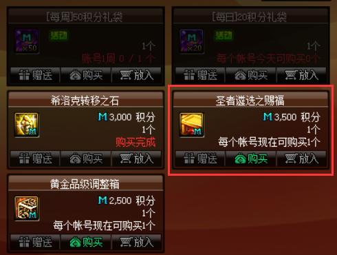 积分商城中可以使用3500积分购买圣者遴选之赐福,使用之后可以让遴选属性取最大值,遴选没有毕业的勇士们非常推荐兑换。