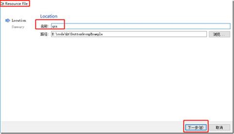 在“名称”中添加资源文件名“qss”,然后点击“下一步”,得到