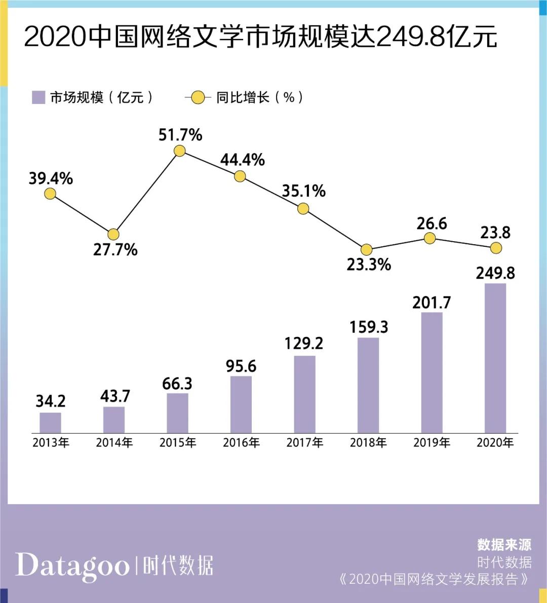 但奈何不住它受欢迎。在中国互联网络信息中心(CNNIC)发布的报告第47次调查报告,网络文学作为中国互联网的重要组成部分被写进了报告,报告显示,截至2020年12月,我国网络文学用户规模达4.60亿,占网民整体的46.5%这意味着每3个中国人就有1个人在网上读小说。在大学寝室的被窝里,在早晚高峰的地铁上,人们快速滑动屏幕,想要看到下一章。据艾媒咨询测算,2020年中国网络文学的市场规模达到了210亿元,而其潜在的市场高达千亿。