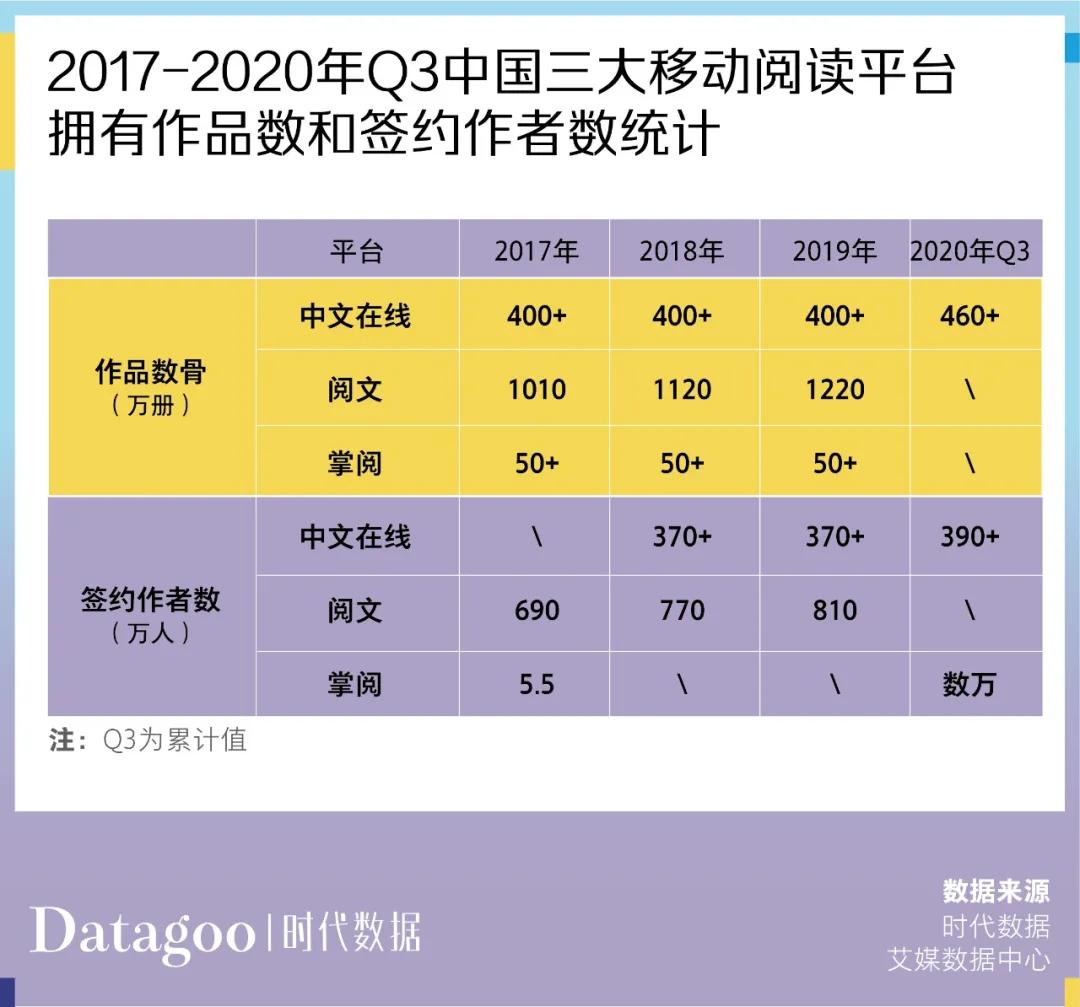 而他们的共性是均来自传统阅读平台。数据显示,近年中国三大移动阅读平台旗下拥有版权数和签约作者数都稳中有升,而阅文作为移动阅读头部企业,更是靠作者数和版权数构建行业绝对壁垒。截至2020年第二季度,中文在线及阅文集团版权成本超过3亿,未来版权及头部IP竞争将是企业得以继续增长的关键驱动力。