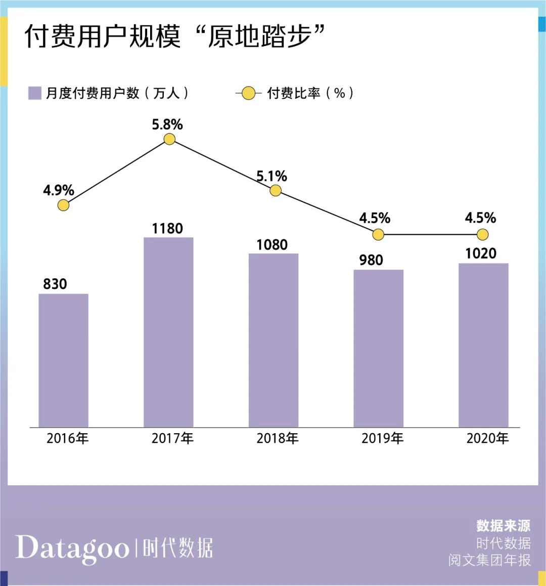 过去三年,在免费阅读市场高歌猛进的同时,根据财报,作为行业头部的阅文集团付费用户规模始终在原地踏步。2021上半年,阅文平台平均每月付费用户同比减少12.3%至930万人。