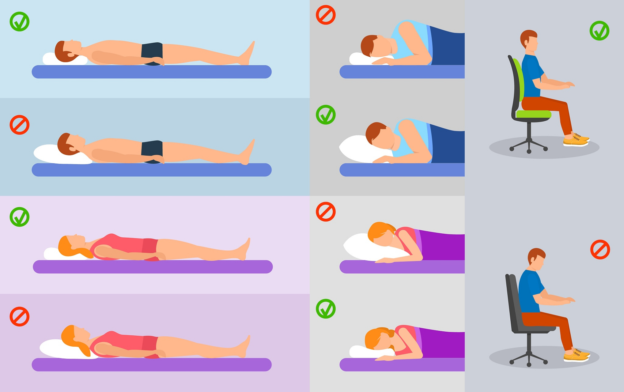 侧卧是对腰椎最友好的睡姿之一,但要注意正确的摆放方式: