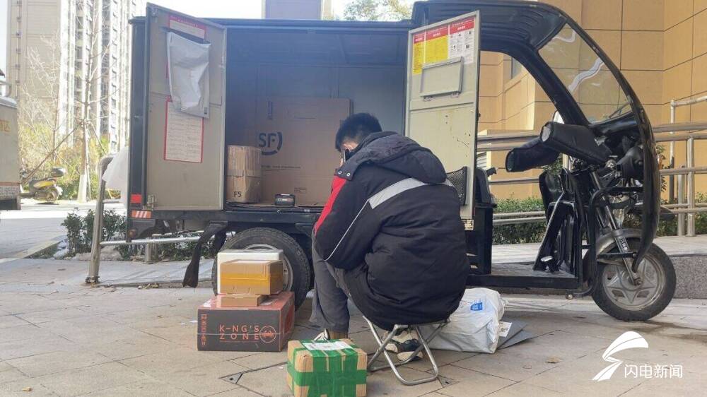 和之前不同的是,今天双十一的战线拉得很长。白明锐忙活的时间,也比平时也多了,回想起双十一送快递的经历时,白明锐对下雪那几天的工作记忆犹新。“最难的就是高峰期刚开始和下雪的那几天,电动三轮车根本骑不了,只能选择徒步去送,送快递时头上全都是雪,进去楼道里边全都融化了,像刚洗完头一样。雪水滴滴答答往下滴。当时顾客看我辛苦,给我拿了一瓶酸奶,第一次收到小礼物,感觉心里也特别的温暖。”