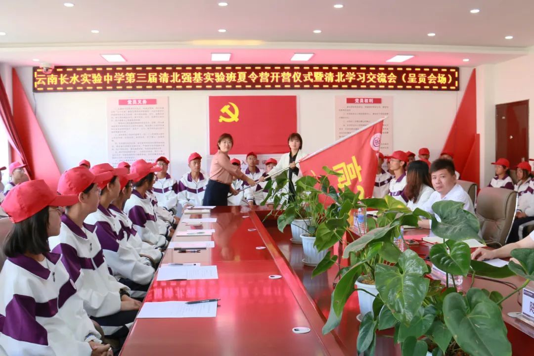 最后,云南长水(衡水)实验中学本部校区、呈贡校区、玉溪校区2022级强基班学生庄严宣誓,由各校区执行校长为强基班授旗。此次夏令营开营活动在合影中圆满结束。