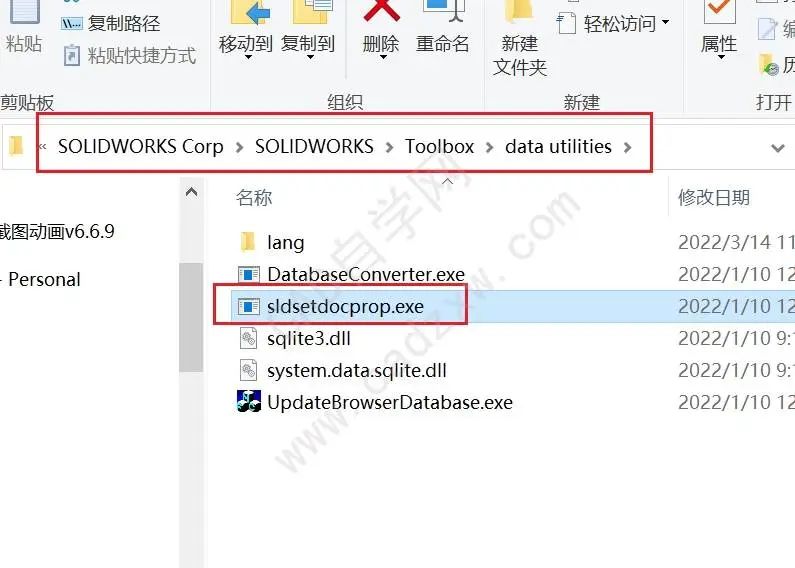 关闭solidworks中打开的零件,找到solidworks安装路径D:\SOLIDWORKS Corp\SOLIDWORKS\Toolbox\data utilities下的sldsetdocprop双击;