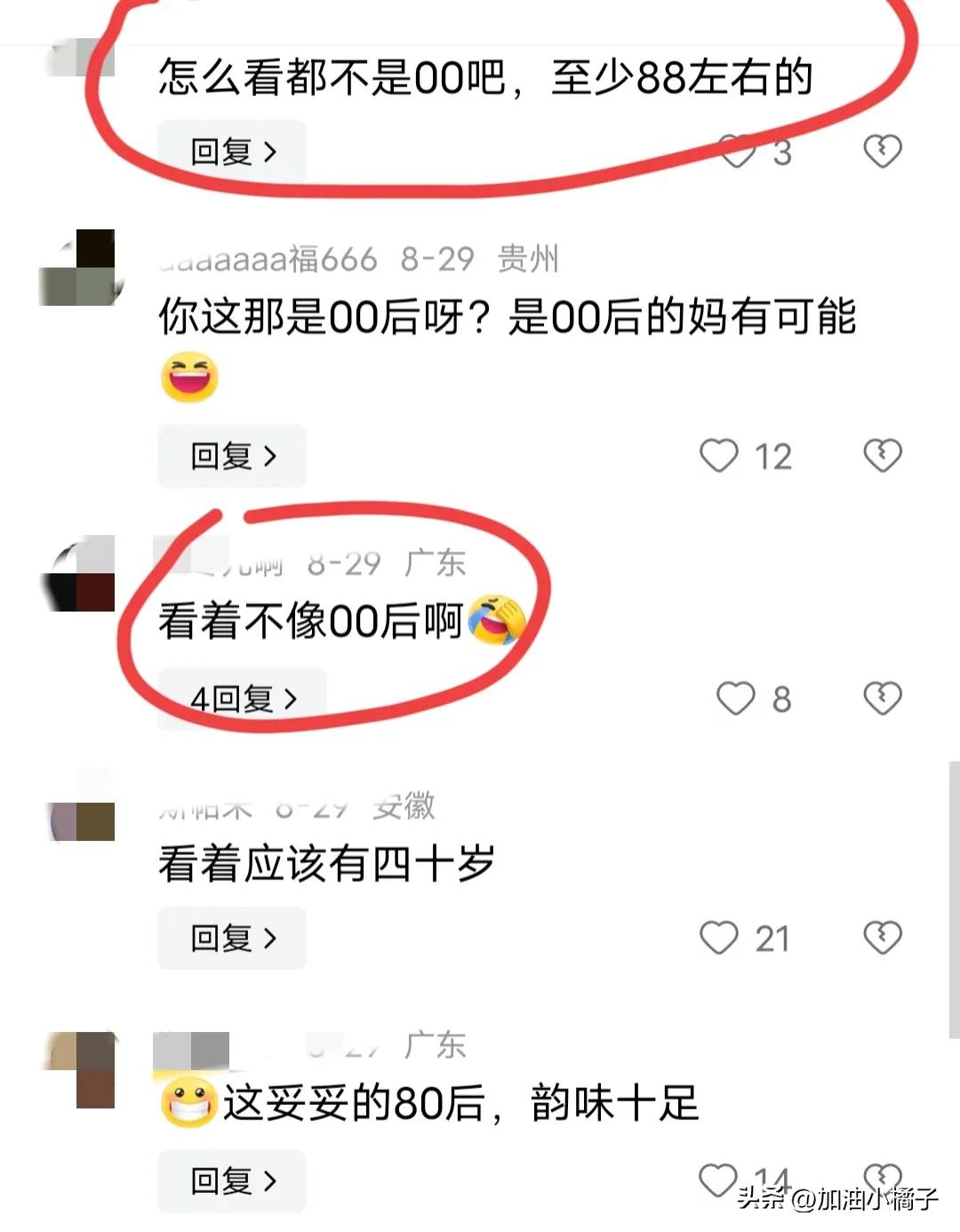 怎么看都不像是00后的,倒是像80后的,说是00后的妈妈还差不多。