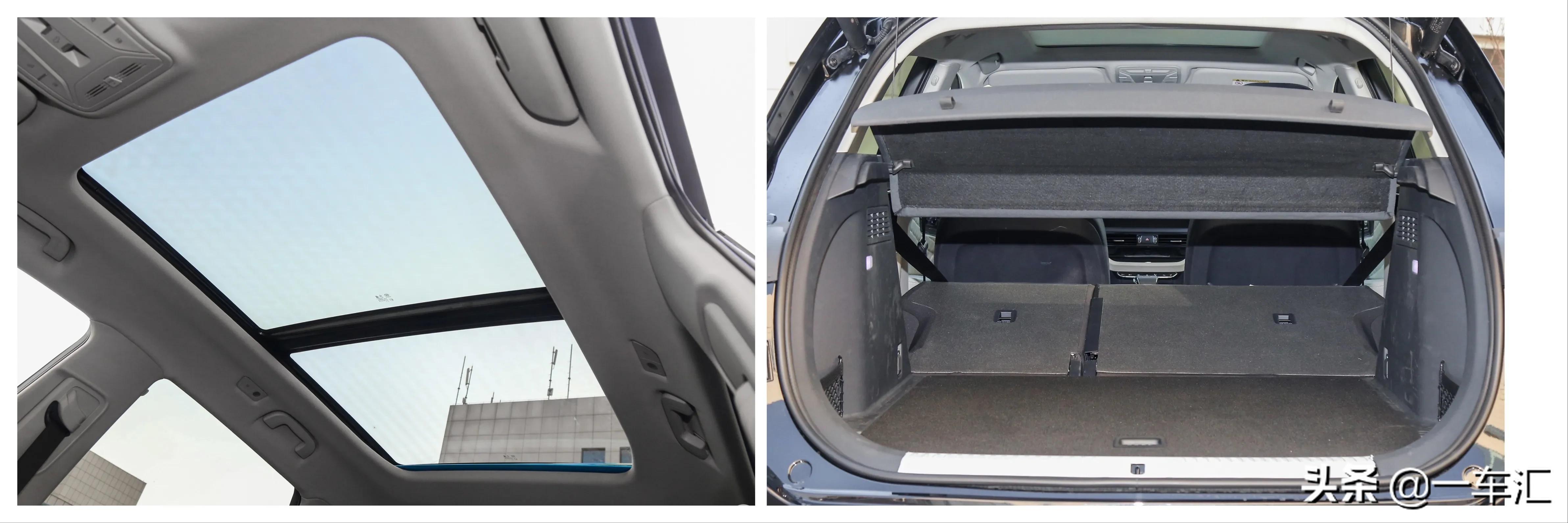 除最低配智联旗悦版外,其它版本车型均搭载了可开启式全景天窗;后备厢内部工整,后排座椅靠背支持按比例放倒,全系除最低配智联旗悦版外,其它版本车型均配备了后备厢电动尾门。