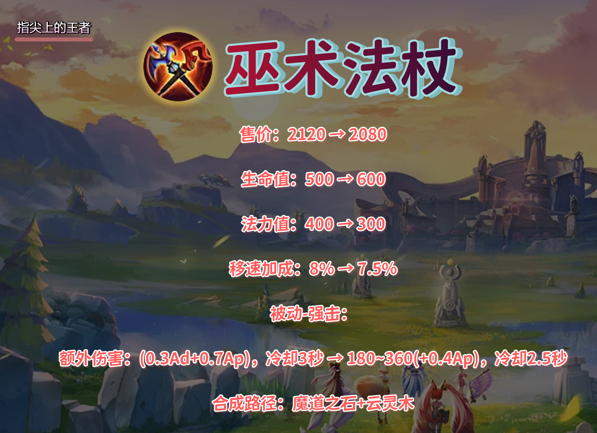 巫术法杖,前期加强后期削弱,但如果是因为它的问题,为啥同样出巫术法杖的嫦娥胜率反而还涨了很多?