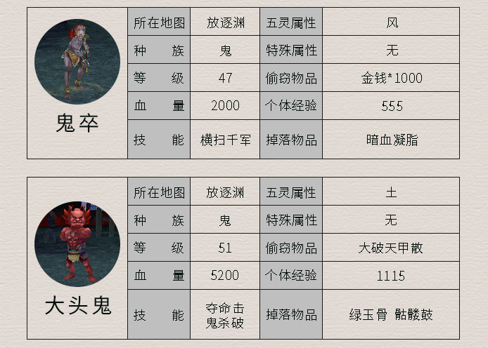 今天呢,小编为大家整理了一下《仙剑4》里面所有的怪物(严格来说应该是战斗对象)以及其各项属性,就让我们随图谱来一起回忆下这款经典的游戏吧!