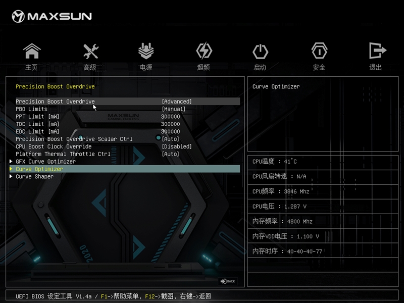 略显遗憾的是BIOS中内存时序小参选项不够全面、功耗显示也不太准确,希望铭瑄后续的BIOS更新能带来更多的功能。