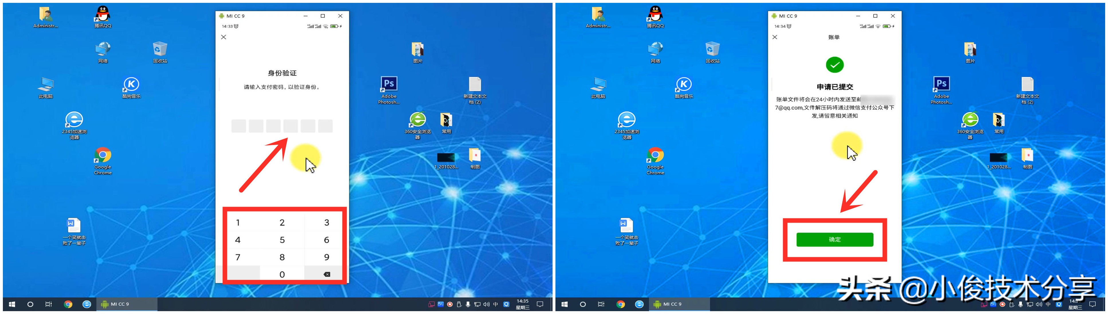 然后输入我们的支付密码验证我们的身份,此时我们就可以完全地下载这个账单了!我们点击确定,这个时候我们只需要等待接收账单就可以了!