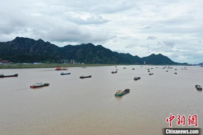 7月7日,浙江温州,船舶在瓯江梅园锚地避风。