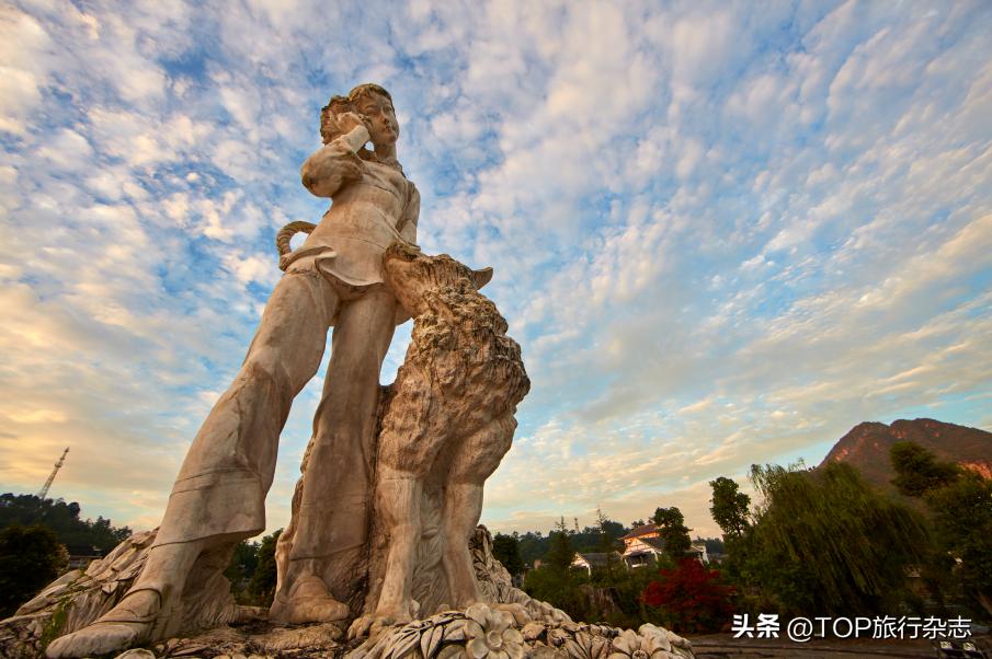 翠翠岛便在河对岸,绿树如茵下,一座清秀的翠翠雕像正垂头凝神。“那个人也许永远不回来了,也许‘明天’回来!”这仿佛是《边城》一文最好的注脚。