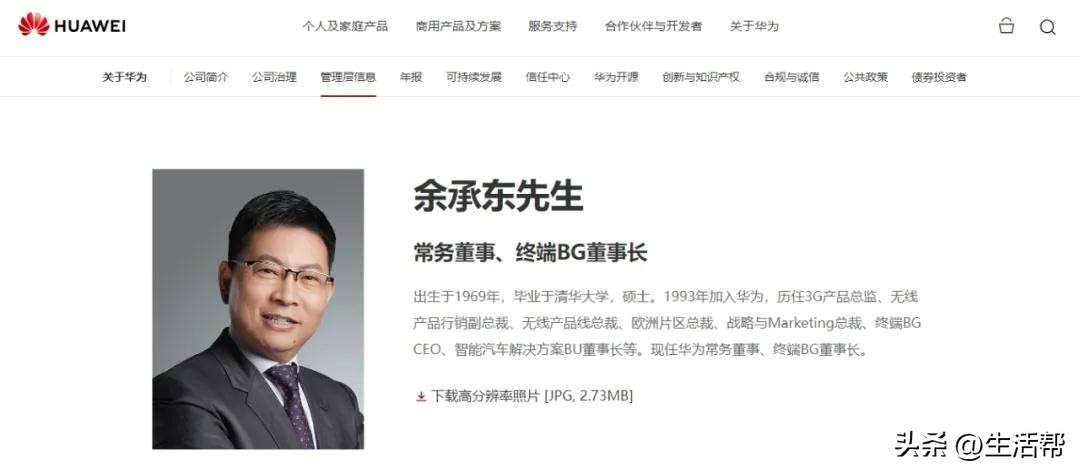 4月4日消息,华为官网对余承东的介绍信息、余承东微博和抖音的认证信息已变更为“华为常务董事、终端BG董事长”,原先的“智能汽车解决方案BU董事长”身份认证已取消。