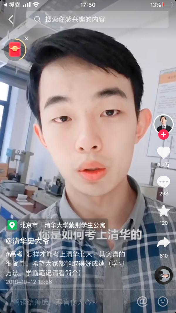 这么多闪亮标签的背后,是一个小身板儿的清秀男孩,他叫史家昕,是个来自咱辽宁葫芦岛的“95后”。史家昕有个为更多人熟知名号——“清华博士汪 史大爷”,这是他75万粉丝的抖音账号昵称。