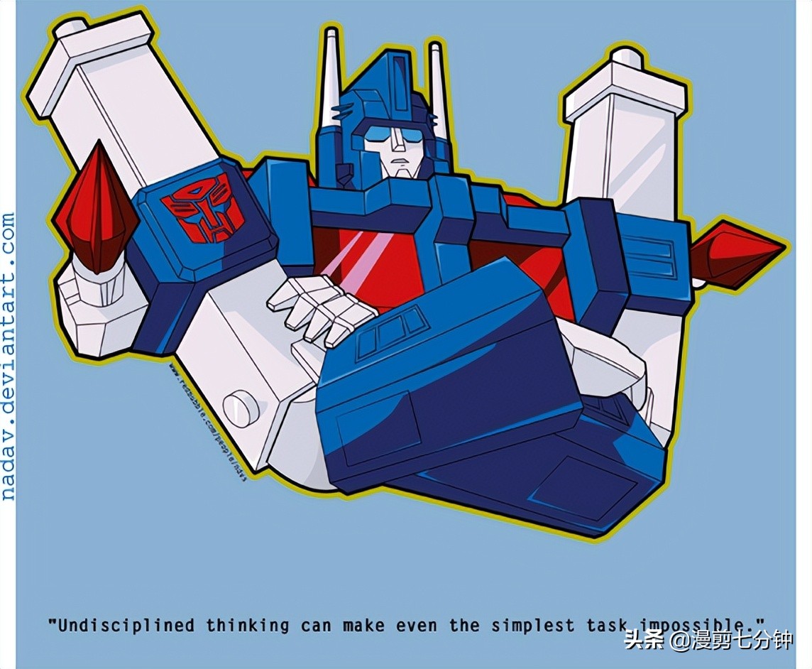大家好,我是漫剪七分钟,昨天心血来潮做了一期太空堡垒里的女神,丽莎的视频,于是有些偷懒,就没有再做变形金刚人物志的解说。今天我们继续来聊变形金刚人物志。昨天晚上临睡前,有个粉丝给我留言,可不可以做期通天晓的视频,当时回复他说,搜集下素材就可以开工了。今天早上,坐在书桌旁,构思文案的时候,第一个想到的就是通天晓。但是,想了很久,对这个角色总是没有太好的灵感来构思。通天晓绝对是变形金刚系列中绕不开的一个角色,但是,他在整部故事里,始终不能给我们太多的共鸣。无论是出于故事设定还是人物性格的设计,总是感觉欠缺了些什么。而且在复杂的变形金刚世界观里,他在不同的故事线中有着不同的人设和表现。总感觉讲起来很麻烦。但是既然答应了粉丝的要求,我们就得