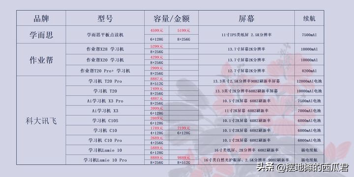 以上就是除了小度以外,这三个学习机所有的在售产品型号了。