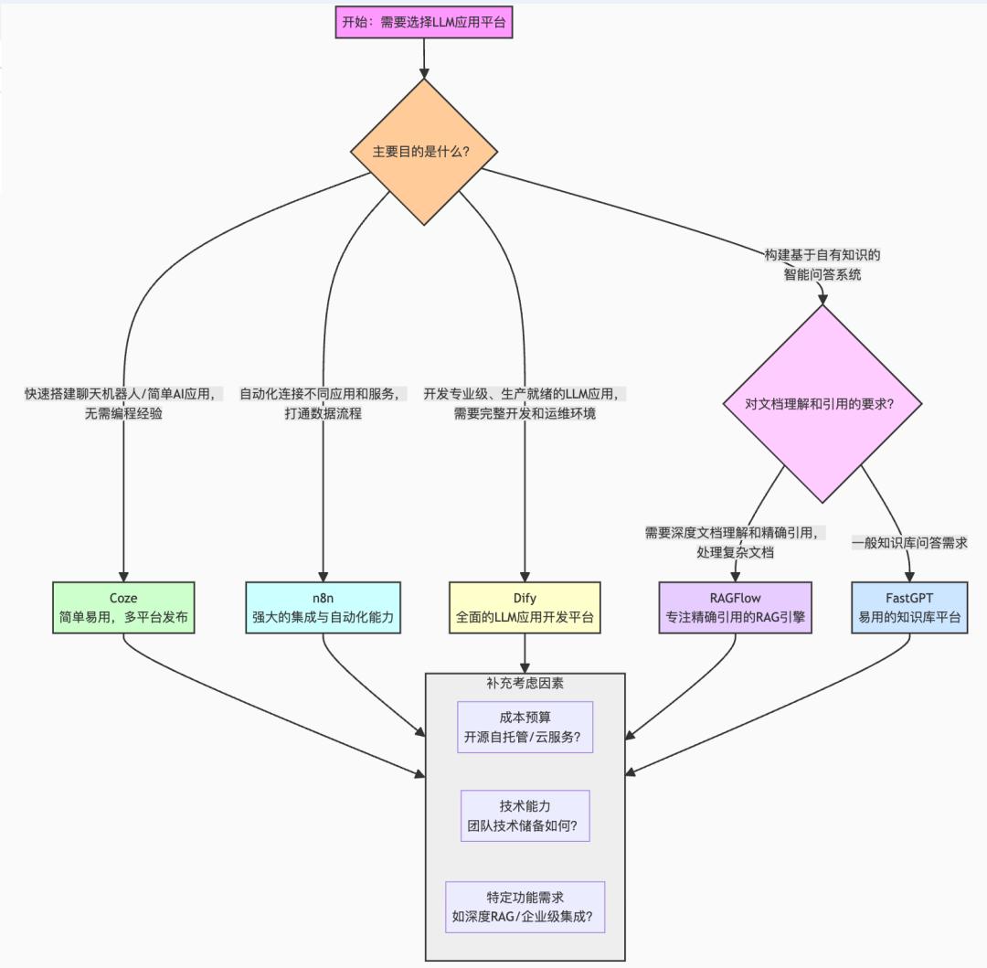 如果可能的话,可以先从使用门槛较低的平台(如Coze)开始尝试,熟悉LLM应用开发的基本概念和流程;