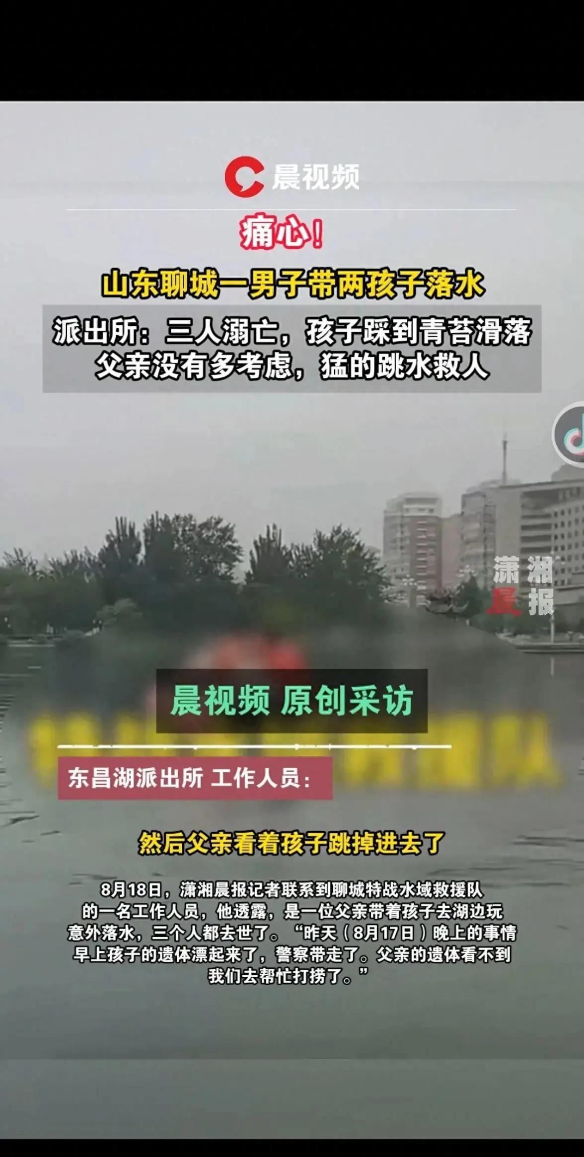 痛心!聊城俩小孩踩青苔滑落湖中, 父亲跳水救人, 派出所: 三人溺亡!