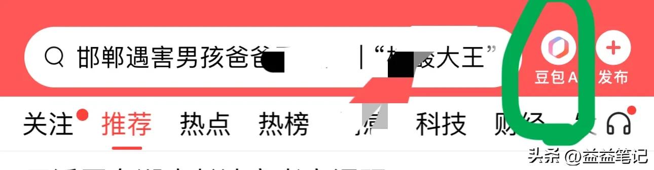 豆包AI,在头条首页的右上角。