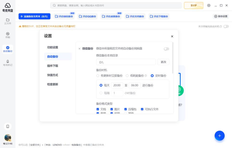 用电脑时势必会处理一些大文件,比如视频、图片以及压缩包,夸克网盘PC端的备份功能支持桌面备份、指定文件夹等自动备份,不仅可以摆脱手动上传的麻烦,还能有效解决重复和遗漏文件的问题。