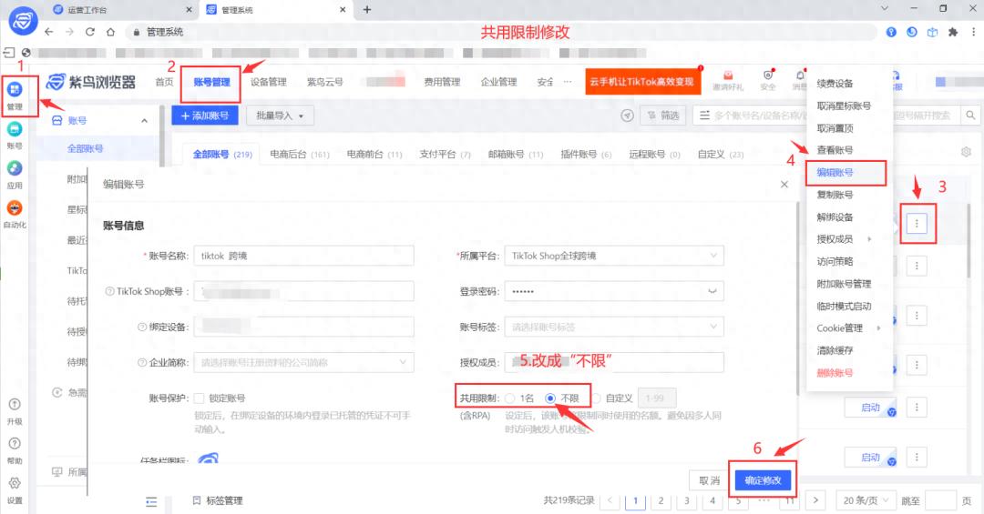 ②Android手机无法打开开启【共用限制】的账号,需要Android手机打开的账号,有权限的管理员可以先将【共用限制】调整为“不限”