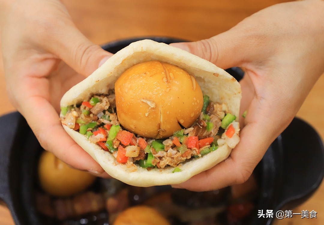 好了,一道经济实惠的肉夹馍就做好了。