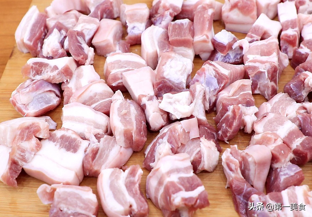 准备五花肉一块,切成块,不要切得太大不易入味,也不要切得太小卤的时候容易收缩。