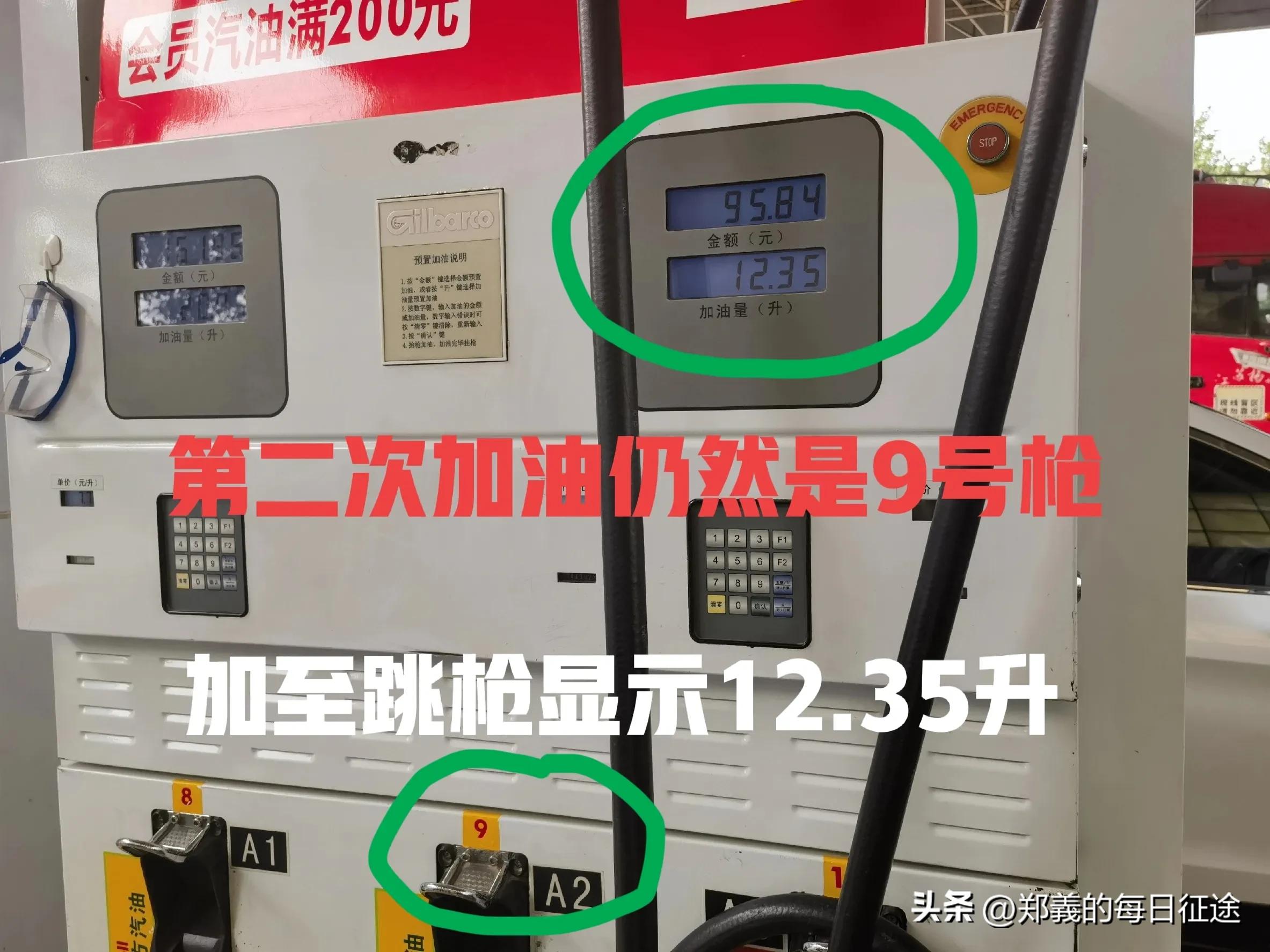 忙完工作,折返继续之前的加油站加油,同一个油枪加满(跳枪止),显示加了12.35升,花费95.84;最终通过仔细核算,这辆车当前的百公里油耗是7.7升,折合每公里6毛钱!