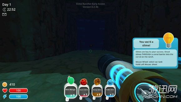进游戏后,直接去找蔬菜,水果,鸡找到差不多40-50个后,去喂粉色大史莱姆【尽量用蔬菜,鸡来喂】,得到钥匙后去第二区域。接着就是正事以蜂蜜为主,水,爆炸为辅,来抓史莱姆。再在期间找一点芒果。如图