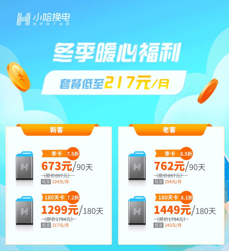 开通冻结服务期间,系统不会扣减用户已冻结处理的有效天数,亦不产生逾期费用。活动期间,每位用户可使用2次冻结机会;超过活动期,则自动解冻并开始计算天数。除此之外,小哈换电在上海将持续开展冬季暖心福利活动,1月31日前上海用户购买换电套餐,最低可享75折优惠。