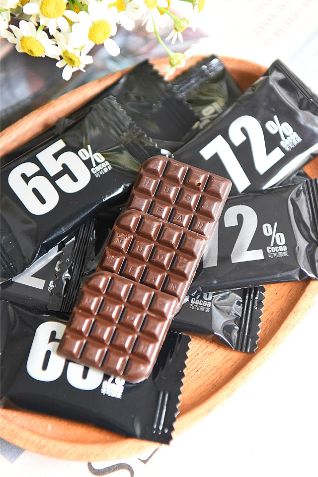 72%巧克力,如果你怕苦又想尝试可可醇厚的刺激,不妨选择这款,苦甜口感为黄金比例,苦中有甜,如果你初次尝试黑巧,就从72%的“入门”吧。