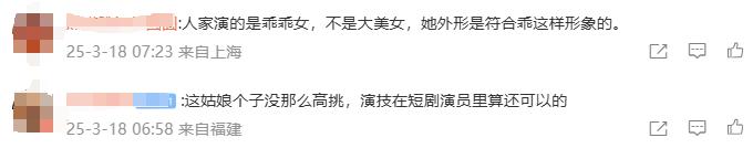 对于热搜话题,不少网友纷纷表示了对余茵的支持:“身高和外貌并不重要,作为演员,最重要的应该是演技好。”
