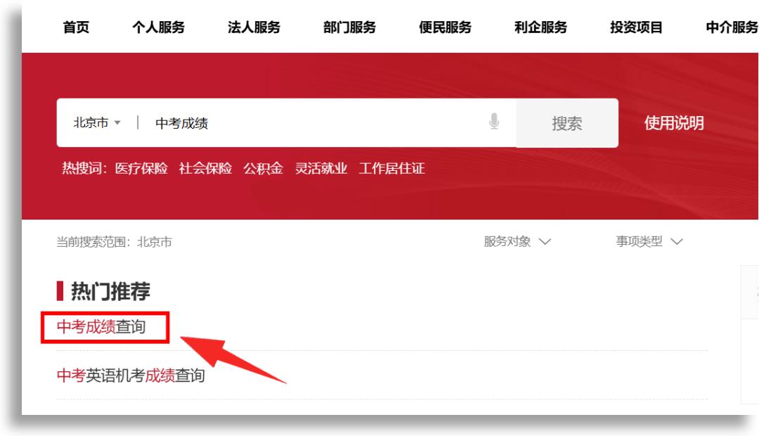 (注:为了更方便大家查询,北京市政务服务网7月9日将在首页“服务推荐”栏中放置中考成绩查询服务)
