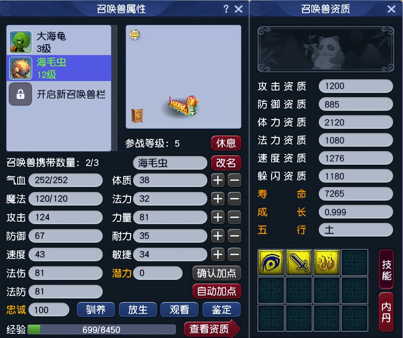 战胜商人的鬼魂后,可以获得一只属性、技能、资质都还算不错海毛虫,可以帮你轻松度过前期。