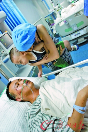 在ICU病房内,儿子来看刘治刚。