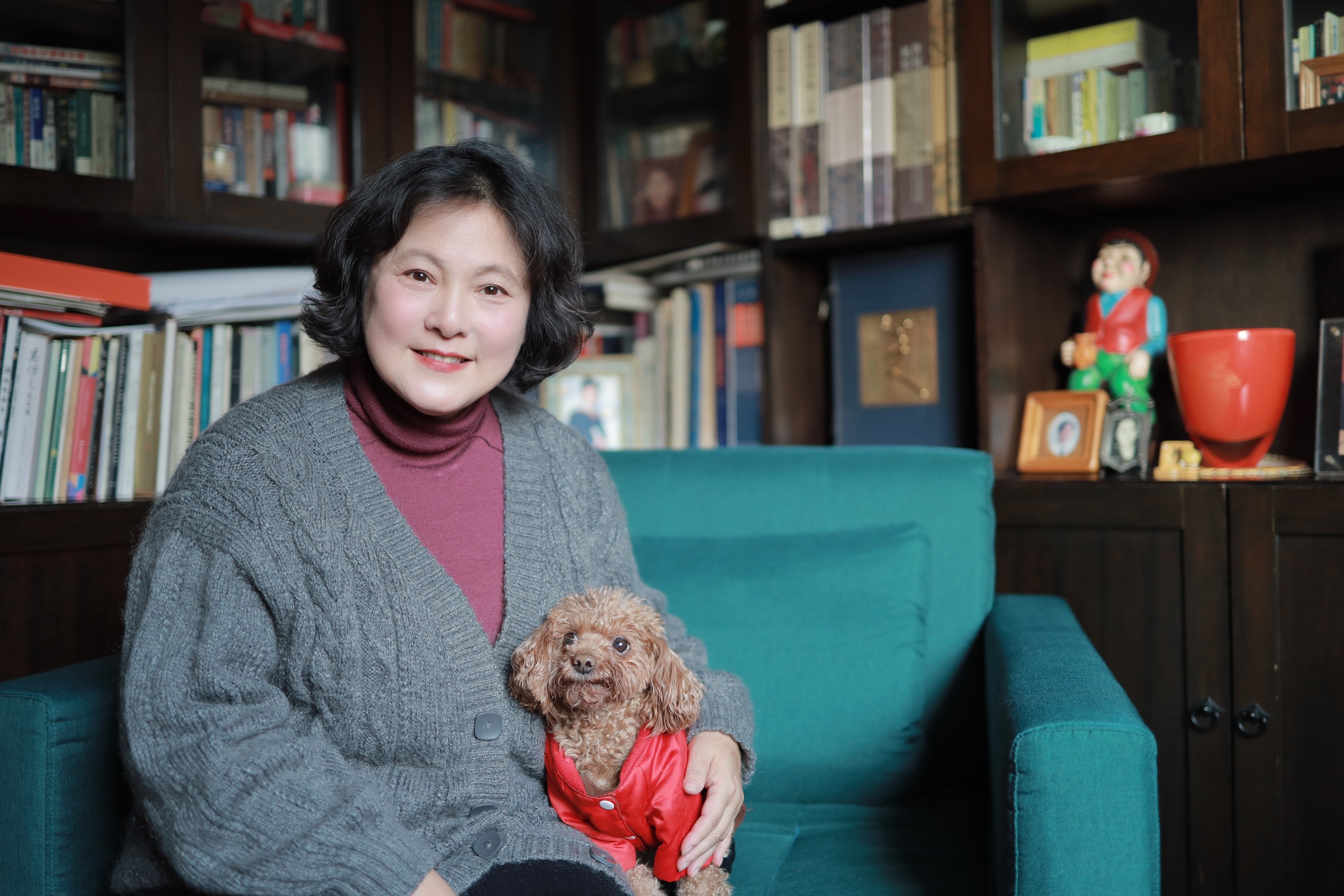 不拍戏的时候,她沉浸在生活里,每天买菜做饭,阅读看片。她几十年如一日地爱逛菜场,听卖菜阿姨告诉她今天什么最新鲜她就买什么。最近她刚刚自己去看了排片少到几乎找不到场次的文艺片《一江春水》,折服于其中女演员的表演,还计划着二刷。家里有一只快10岁的老狗Lucy,她看书的时候会乖巧地坐在她身边把脑袋搭在她腿上。“我是一个要过日子的人,很多人说我的戏很踏实,在表演上非常从容,那是因为我一直是一个认真生活的人。”