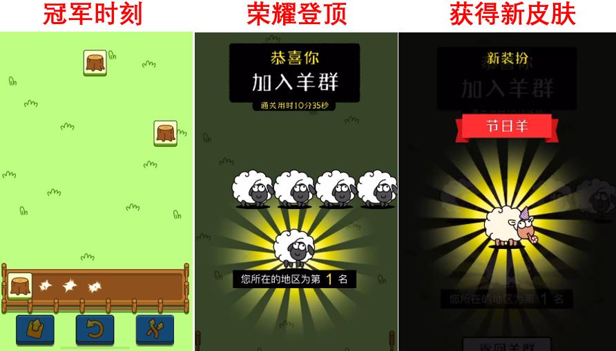 进羊群的赋予你【全国领头羊】的荣誉称号,用时最短的将成为【秋名山羊】,不用道具就过关的官方称其为【最强王者】,我愿称之为神