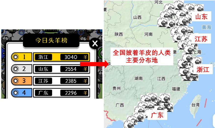 另一个是省份排名。各地区你追我赶,有很多人正是为了壮大家乡的羊群规模在奋斗,不由得让人感慨——怎么都这么闲啊!从中能看出各地区的摸鱼指数,