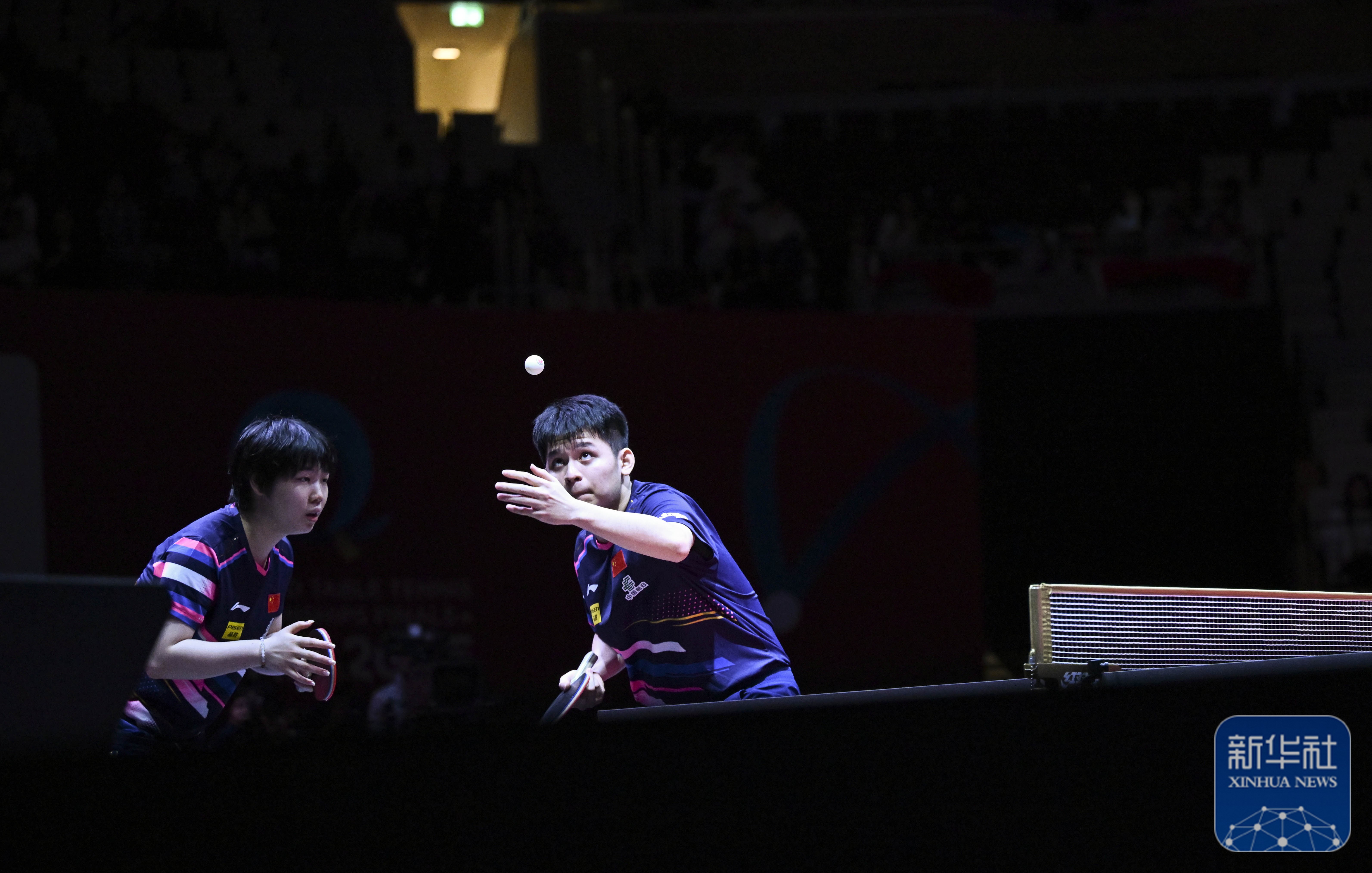 ↑ 林诗栋/蒯曼(左)在比赛中。新华社记者 肖艺九 摄